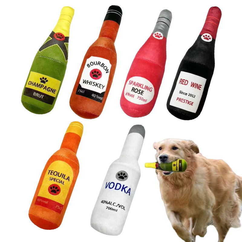 Jouet en Peluche pour Chiens – Bouteille de Bière Couineuse à Mâcher