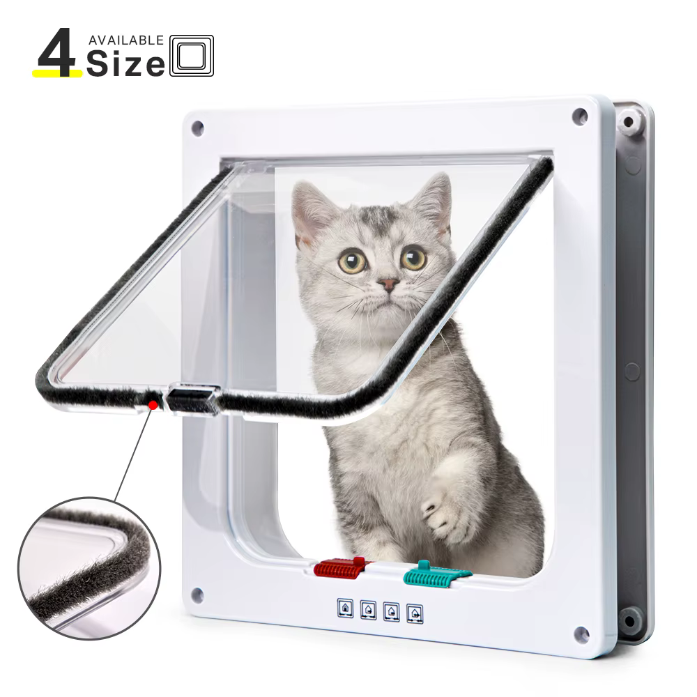 Chatière Intelligente à 4 Voies – Porte à Rabat avec Verrouillage pour Chats et Petits Chiens