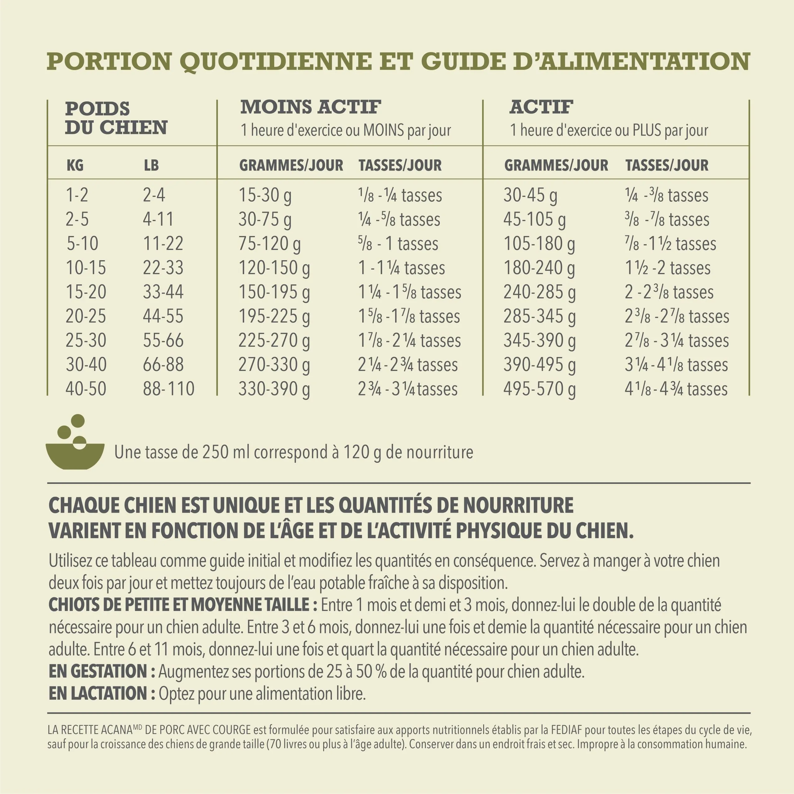 Acana Porc du Yorkshire est une nourriture à ingrédients limités contenant 50% de porc, une seule protéine animale facilement digestible, ce qui le rend idéal pour les chiens sensibles à l’alimentation de toutes les races et les stades de la vie.