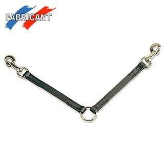 Cuir vachette noir pleine fleur souple, mousquetons américains, anneau soudé. L=longueur hors tout, S=largeur.