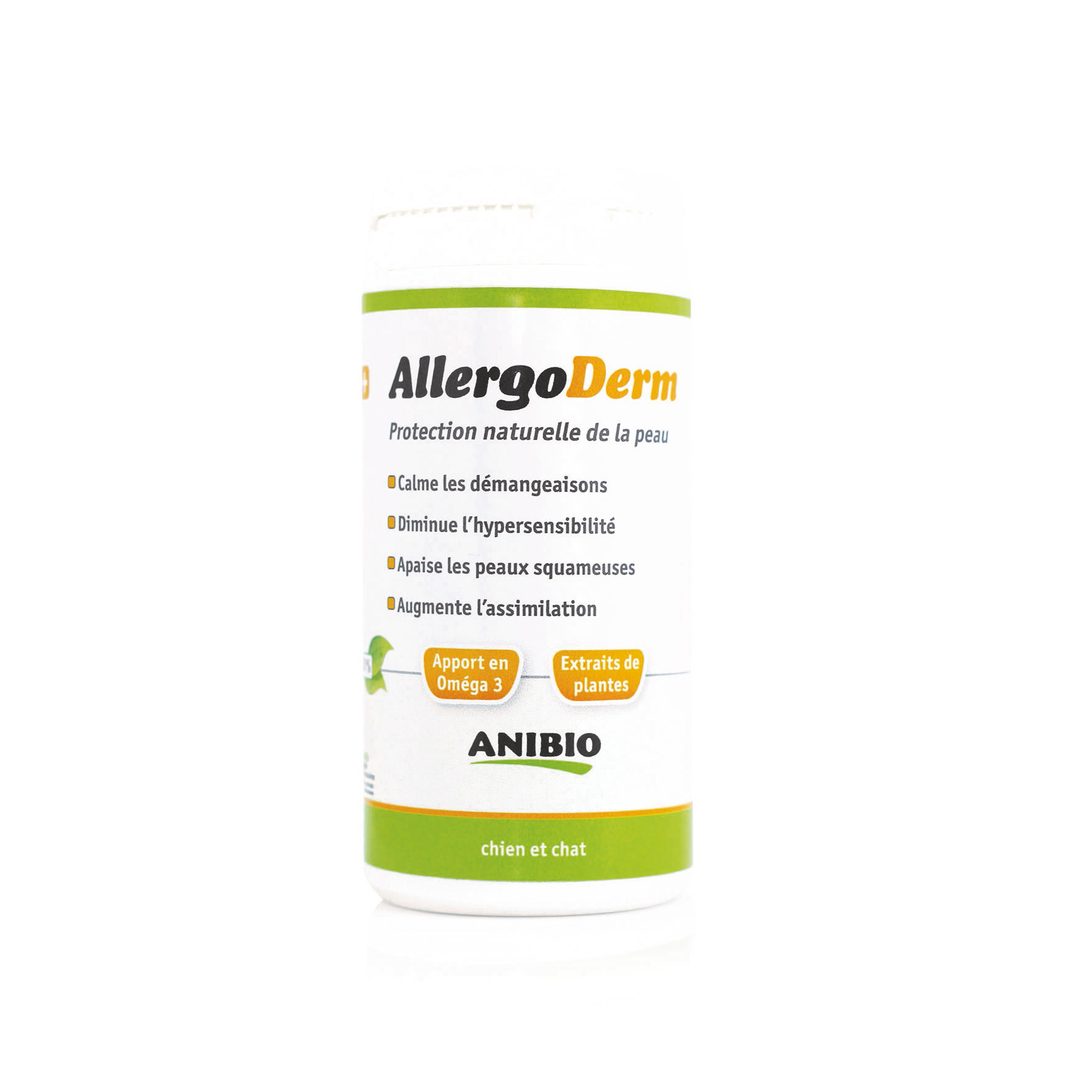 AllergoDerm, conçu pour les chiens et les chats de tous âges, supprime rapidement et efficacement les effets dus aux allergies alimentaires. Ce supplément nutritionnel tout à fait innovant agit sur la peau et le poil grâce à la synergie de ses composants : graines de lin en poudre, pulpe de pommes, extraits de plantes (ortie, camomille, guimauve, prêle des champs, achillée).
