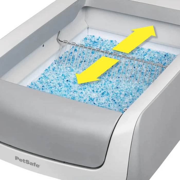 - Capteurs de sécurité pour réinitialiser automatiquement la minuterie du râteau si le chat rentre de nouveau dans la boîte