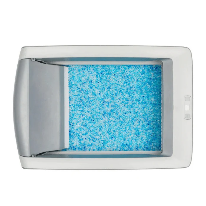 - Bac de litière rempli de litière Cristal bleu de qualité supérieure