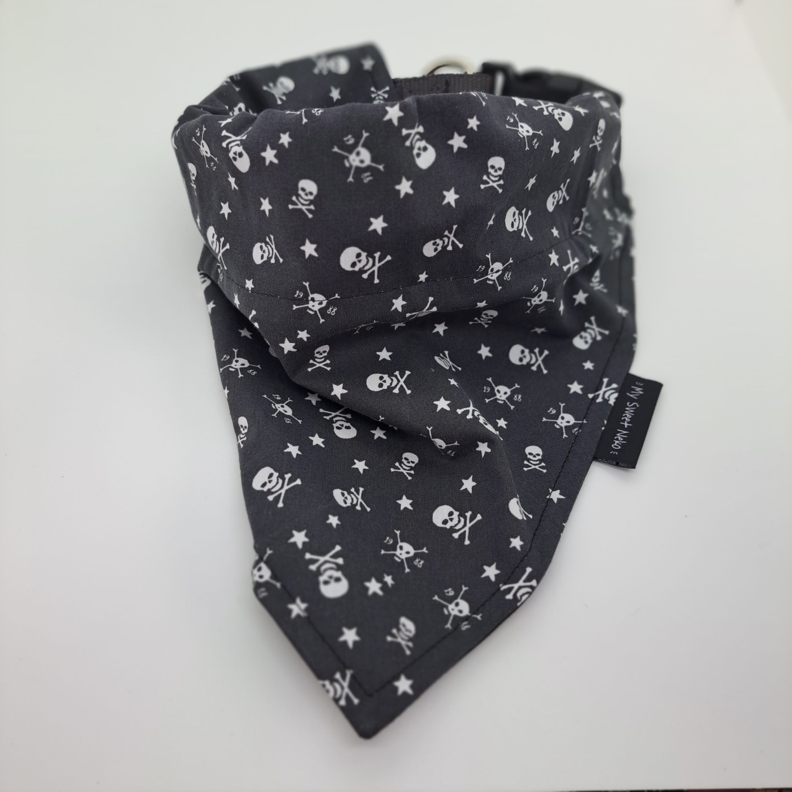 Whether you’re looking for an accessory for special occasions or simply to make your pet even more adorable in everyday life, the black cotton bandana with skull motif is a perfect choice.