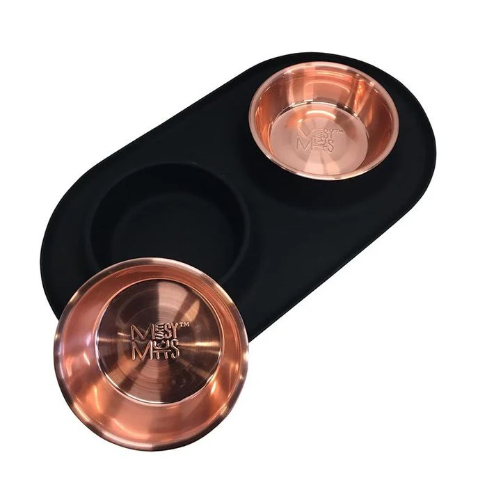 La base en silicone antidérapante empêche d’endommager vos planchers et maintient 2 bols en acier inoxydable en place pour votre chien. Contenez tout autre désordre avec la large lèvre et la bordure surélevée.
