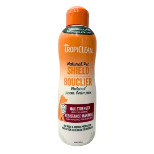 Le vaporisateur TropiClean Natural* Pet Shield pour chiens et animaux domestiques offre une protection contre les éléments. Ce mélange d’huiles essentielles contient des ingrédients parmi les plus puissants de la nature, notamment de l’huile essentielle de citronnelle, de bois de cèdre et de clou de girofle pour des effets durables. S’utilise en intérieur comme en extérieur, conformément au mode d’emploi.