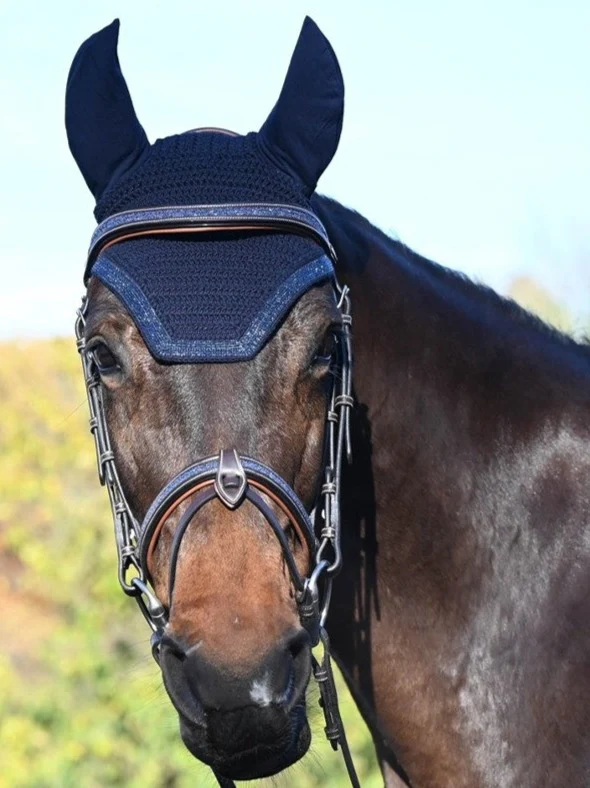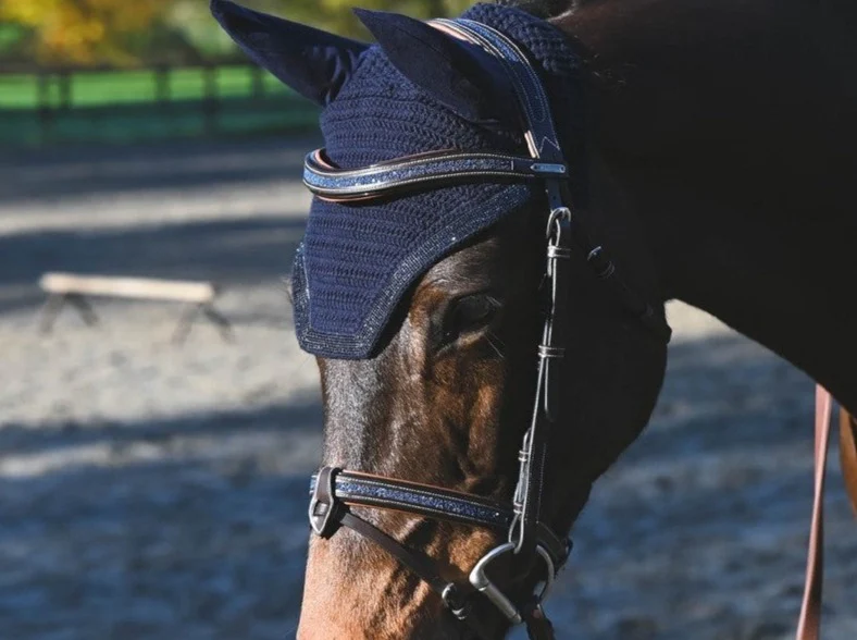 - Du cristal Shiny est incrusté sur le frontal, la muserolle et la têtière. Le noseband est amovible. La têtière est légèrement anatomique pour apporter plus de confort au cheval.
