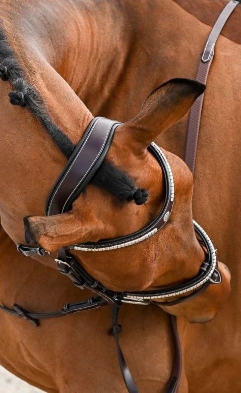 - Le noseband est amovible. La têtière est légèrement anatomique pour apporter plus de confort au cheval.