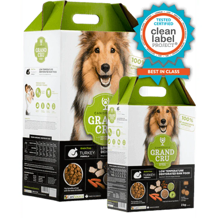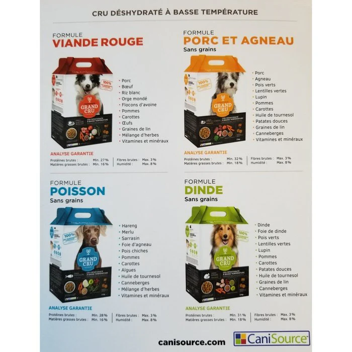 À la différence d’un produit extrudé, les croquettes CaniSource Grand Cru sont fabriquées par un procédé unique de déshydratation à basse température qui conserve la vaste majorité des nutriments originaux. 100% de nos ingrédients sont approuvés pour la consommation humaine et nous veillons à n’utiliser aucun rejet d’abattoir, farine de viande ou de poisson.