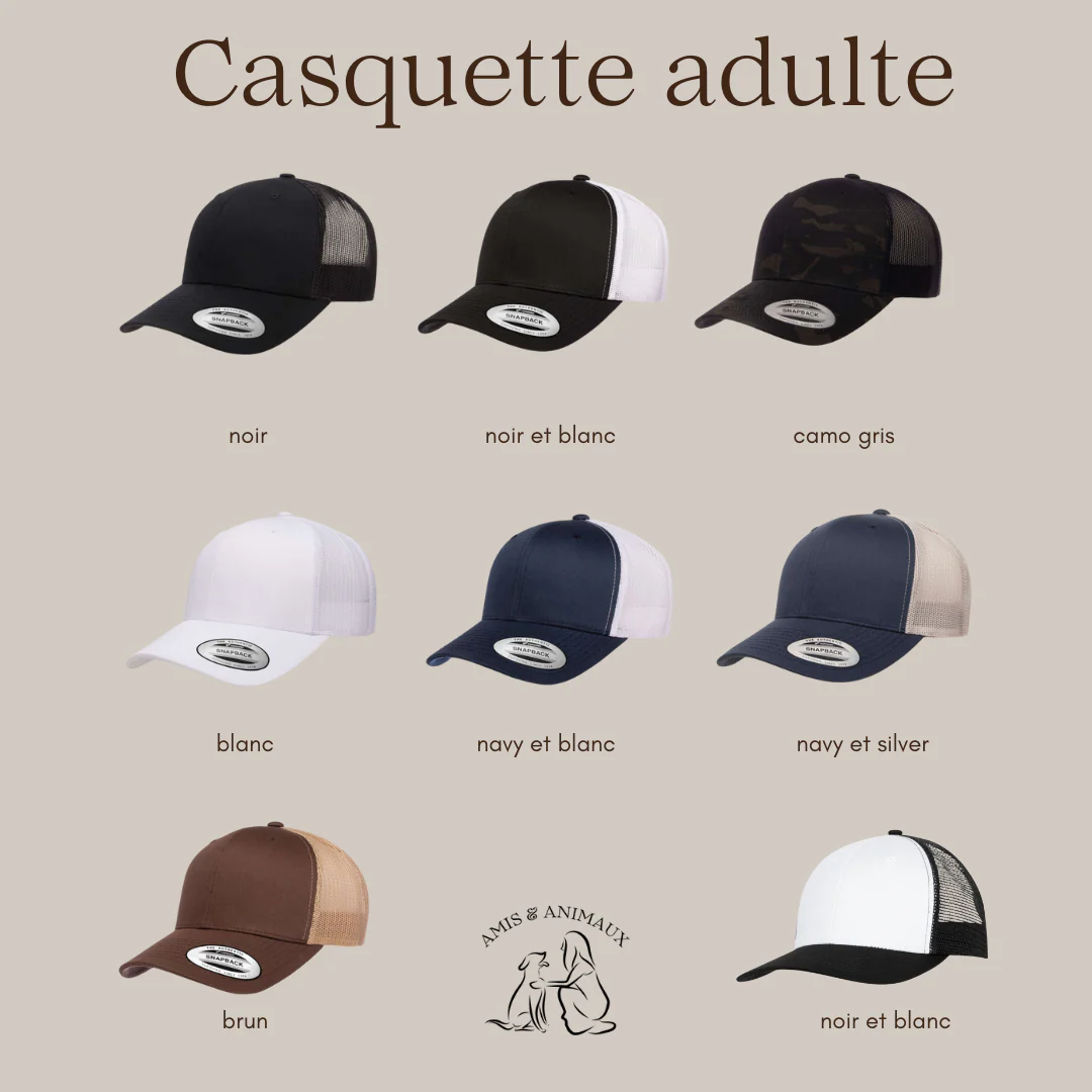 Exprimez votre style unique avec notre casquette personnalisable pour adulte ! Conçue pour convenir à tous, cette casquette unisexe en taille unique est disponible en 9 coloris tendance, parfaite pour compléter toutes vos tenues. Ajoutez une touche personnelle en la personnalisant avec un prénom, un logo, un message ou un motif de votre choix.