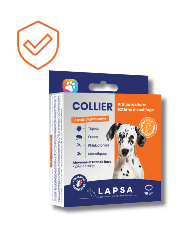 Le collier insectifuge à l’icaridine, actif reconnu efficace par l’OMS (Organisation Mondiale de la Santé) qui agit sur le système sensoriel olfactif des parasites. Le collier protège votre chien de moyenne et grande race et repousse les puces, tiques, moustiques et phlébotomes. Il libère petit à petit les 2 actifs (icaridine & géraniol) qui actionnent en synergie (dès 48H après la pose) une protection optimale de votre chien pendant 3 mois. Comporte un dispositif anti-étranglement pour garantir la sécurité de votre animal et n’affecte pas son sens olfactif. Résistant à l’eau. Couleur marron.