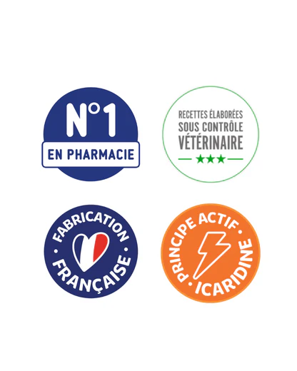- Libère peu à peu les actifs pour une protection optimale de la zone ORL de l’animal contre les infestations