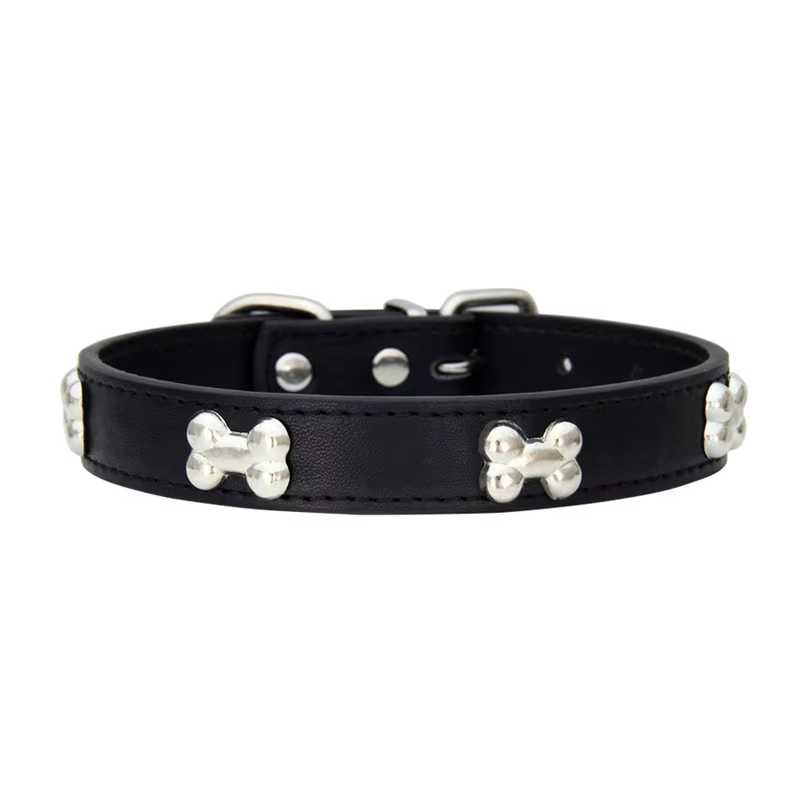 Collier en Cuir Synthétique pour Chiens et Chats – Décor Os, Tailles XS à L