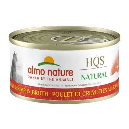 Conserve pour chat au poulet et aux crevettes de la marque Almo Nature.