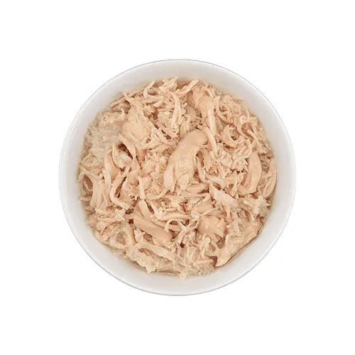 Cette recette est faite avec de la viande de poitrine de poulet effilochée. Nous mijotons notre poulet dans un bouillon de poulet naturel avec une méthode traditionnelle pour produire des arômes naturels. La dernière étape consiste à ajouter notre huile de tournesol, des vitamines et des minéraux.