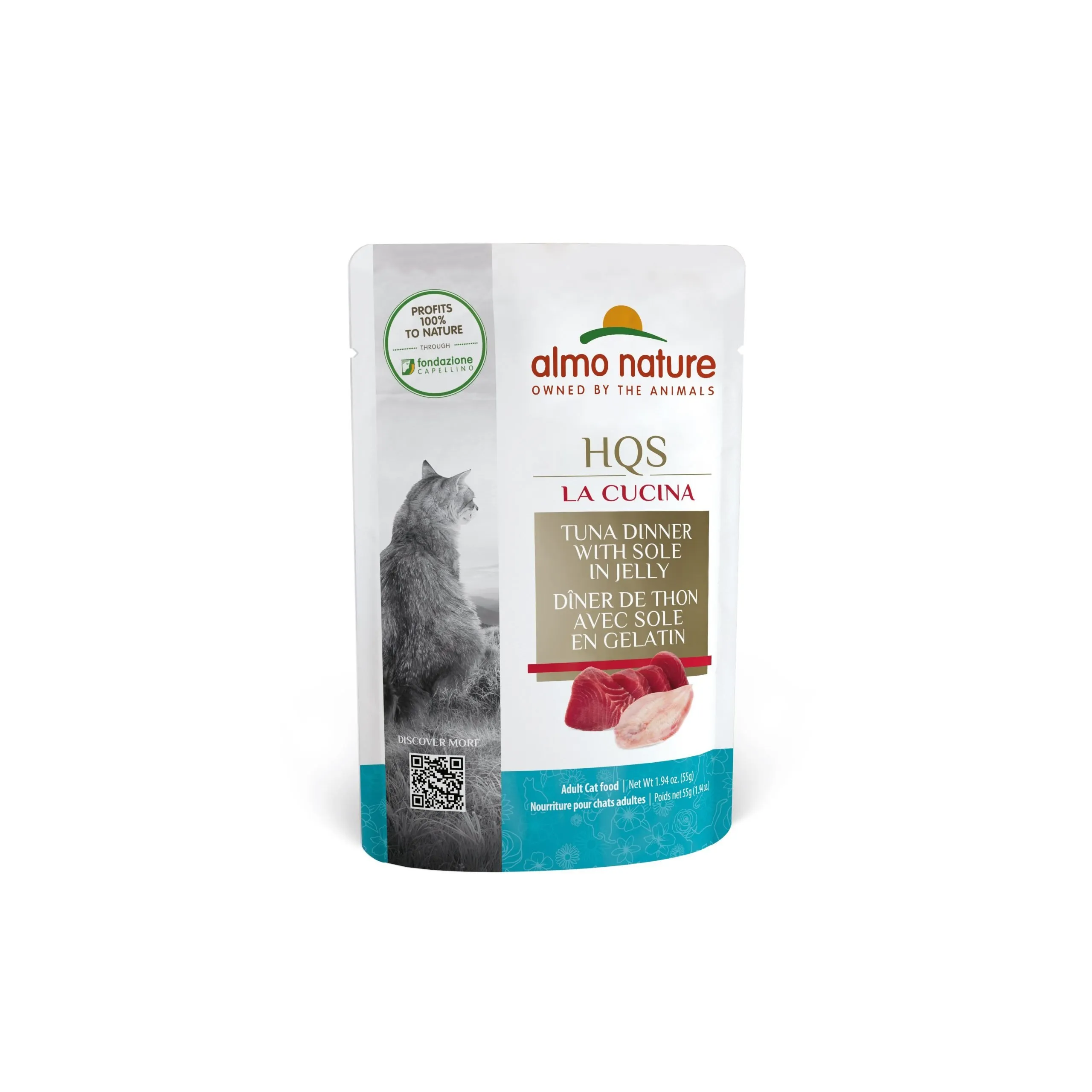 Conserve en pochette chat Almo Nature La Cucina – Thon et Sole en gelée