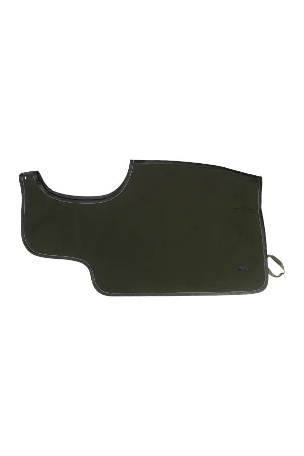 Tapis d’équitation pratique avec évidement dans la zone de la selle et pouvant être fermé par une fermeture velcro devant le
