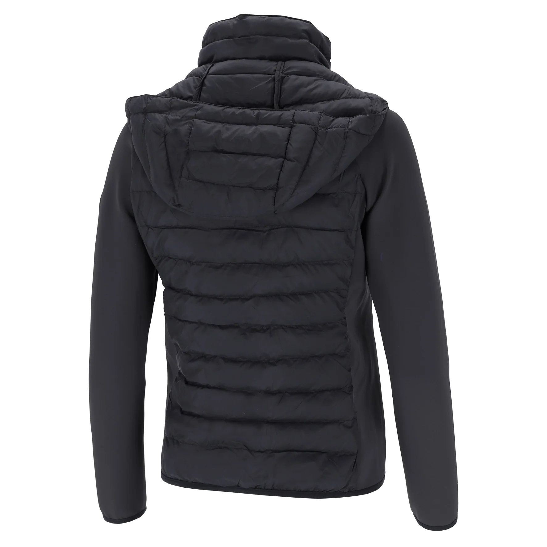 Une capuche rembourrée et matelassée ainsi que l’ourlet et les ourlets des manches avec bande élastiquée assurent un ajustement parfait et une protection contre le vent et le froid