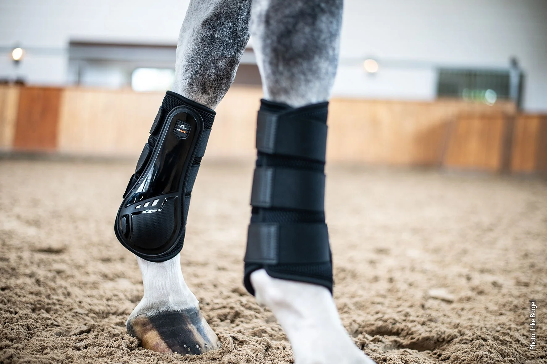 Les guêtres d’entraînement techniques Air Flow Training Boots de Schockemöhle Sports sont un incontournable pour chaque séance d’entraînement ! L’intérieur des membres avant est protégé par une coque rigide, tandis que le tissu en maille et la doublure en bambou assurent une égalisation de la température grâce aux trous d’aération autour du membre du cheval. Les bottes d’entraînement Air Flow sont respirantes et perméables à l’air. Les bottes d’entraînement sont visuellement complétées par le logo à l’intérieur et la fermeture en simili cuir.
