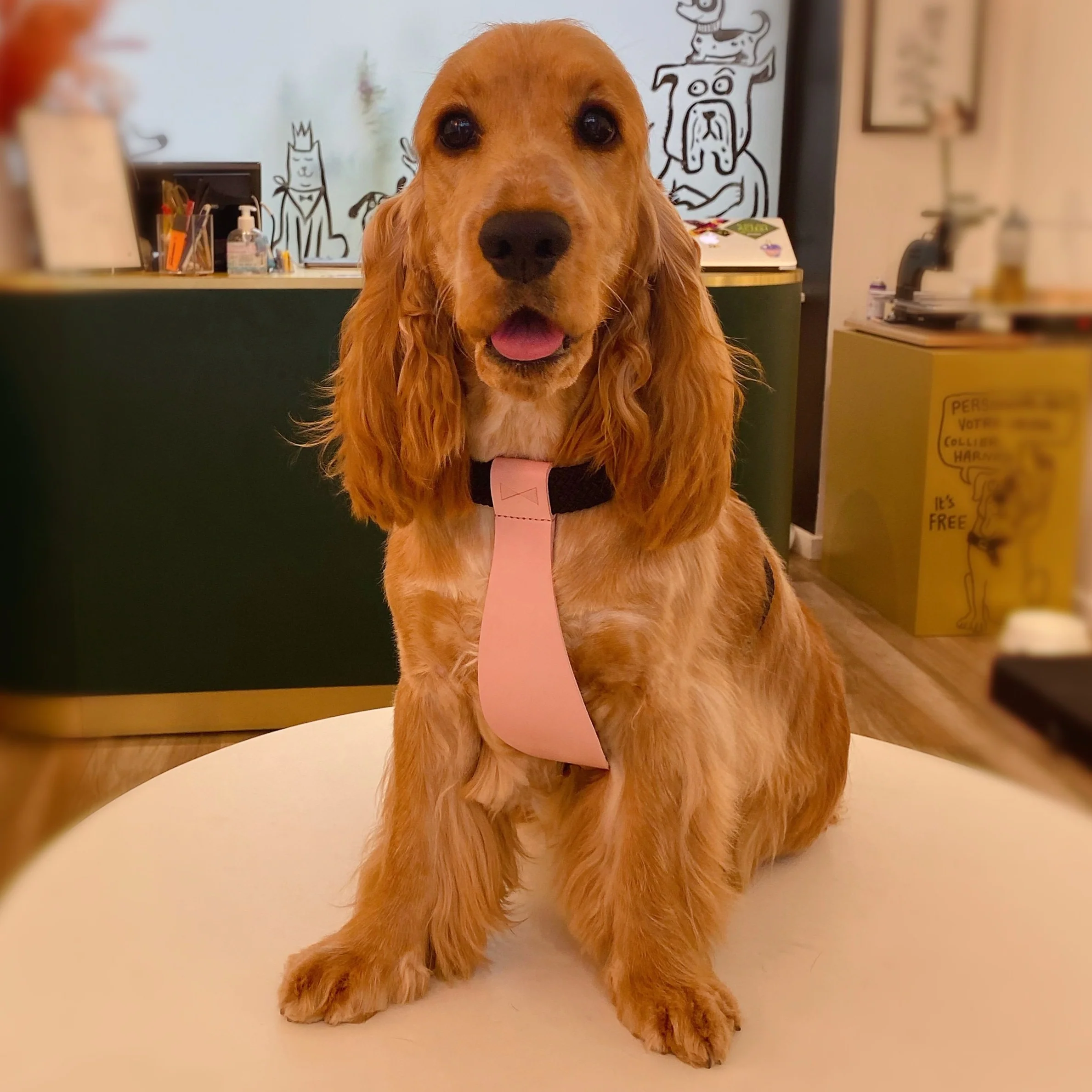 Le détail chic ✨ Une fois porté, le harnais prend la forme d’une jolie cravate, apportant cette touche d’élégance made in Petsochic. Demandez la personnalisation avec le nom de votre chien pour un accessoire unique.