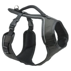 Sa lanière douce réglable se place sous le ventre du chien et se règle pour épouser la morphologie de l’animal au mieux, n’entravant pas ses mouvements. N’abîme pas le poil. Ne tire pas sur les cervicales et n’appuie pas sur la trachée.