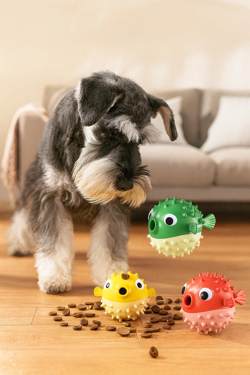 Alliez plaisir et stimulation avec ce jouet distributeur de nourriture aussi amusant qu’utile ! En forme de poisson-globe rigolo, ce jouet coloré fait rebondir les croquettes partout tout en occupant ton chien pendant des heures.