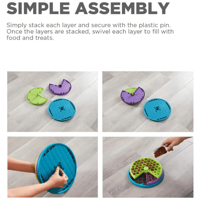 Les chiens doivent parcourir les trois couches de compartiments alimentaires en faisant tourner chacun pour révéler les friandises.
