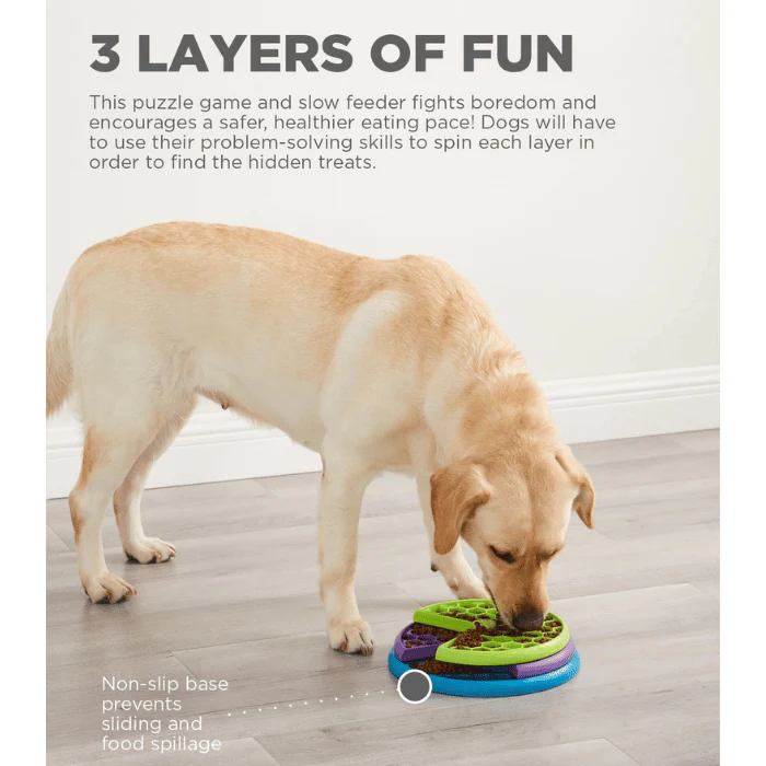 Lickin’ Layers est un jeu de puzzle pour chiens de niveau 2 de Nina Ottosson par Outward Hound.