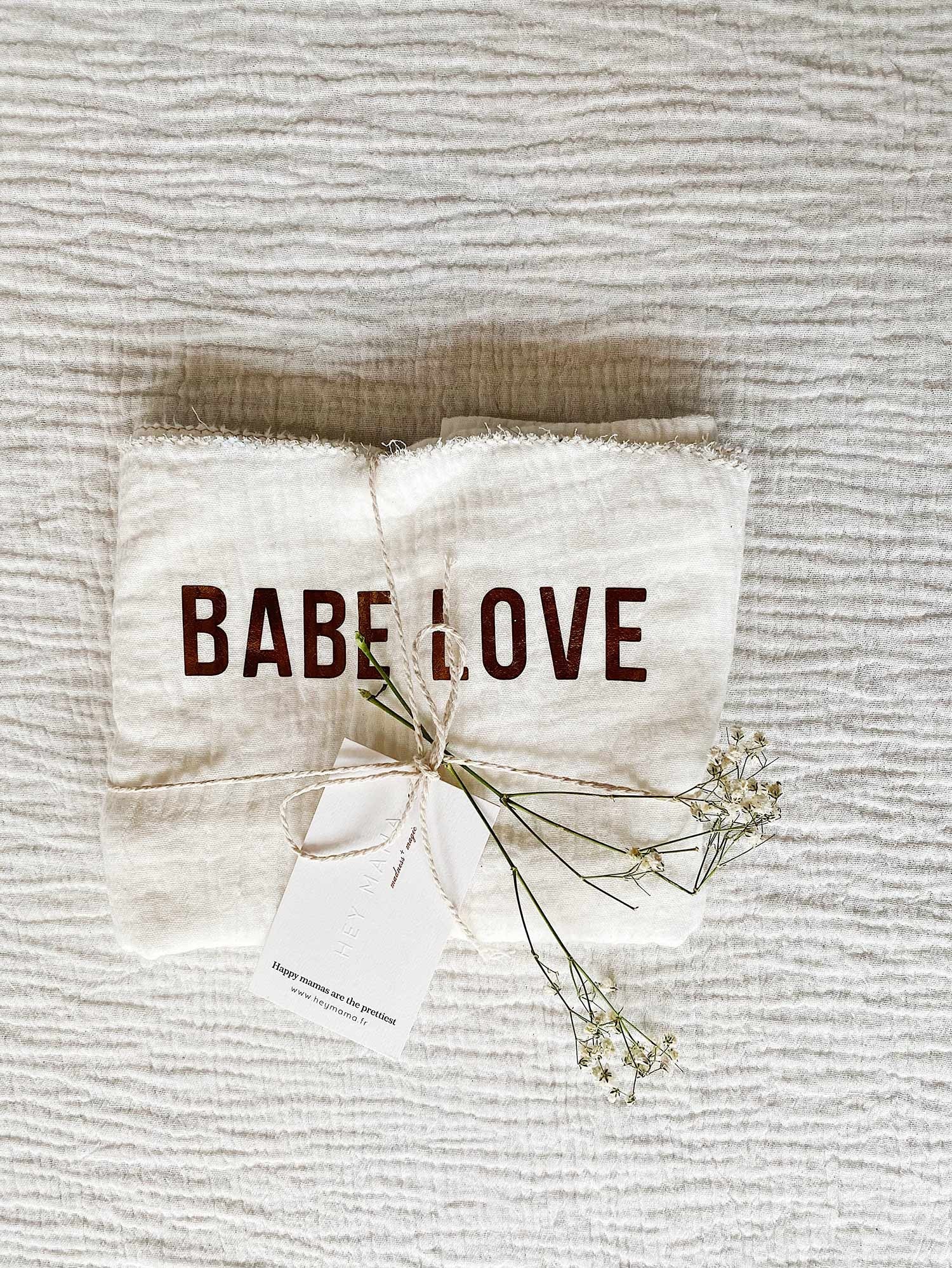 Personnalisez-le avec le prénom, le surnom du bébé ou gardez « Babe Love » 🙂