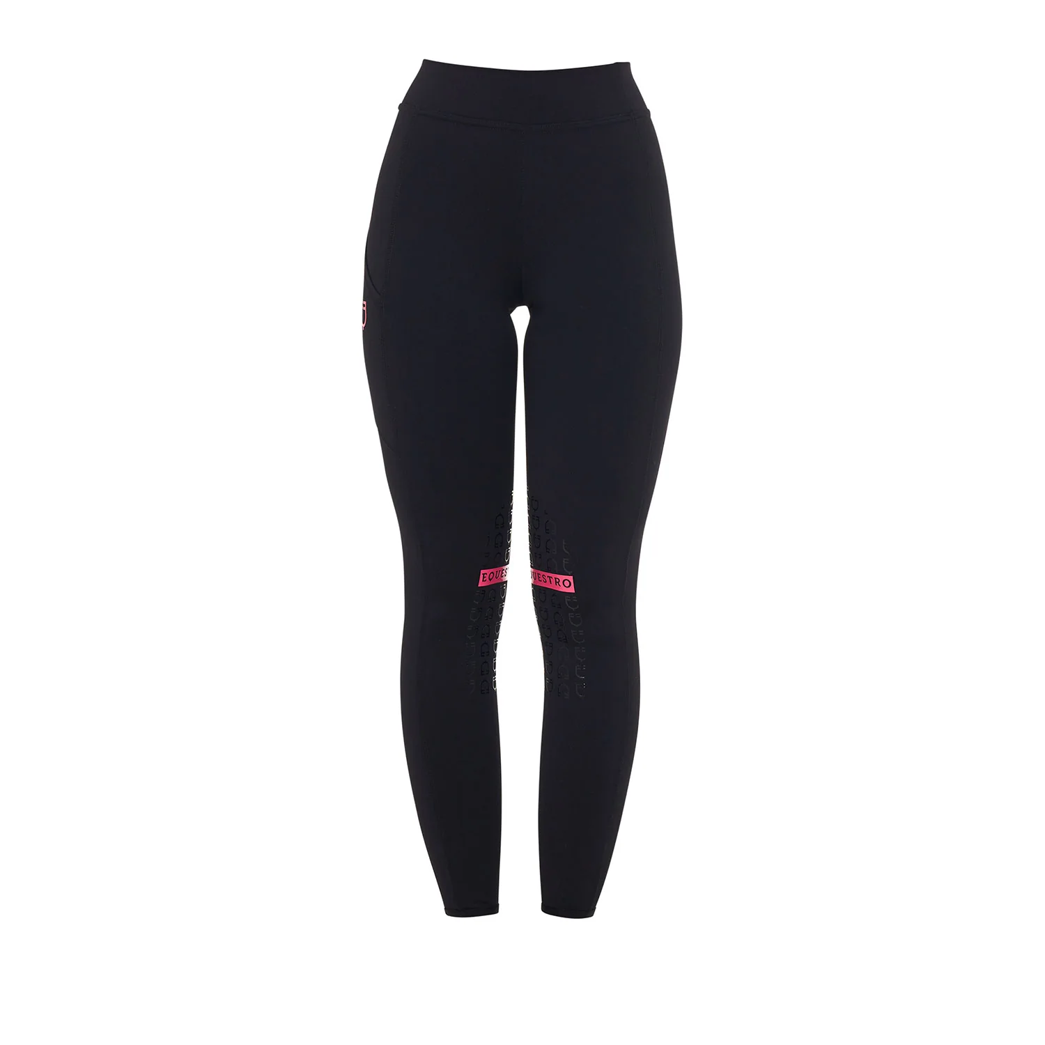 Au niveau du genou, un grip en silicone améliore la stabilité en selle et la posture du cavalier.