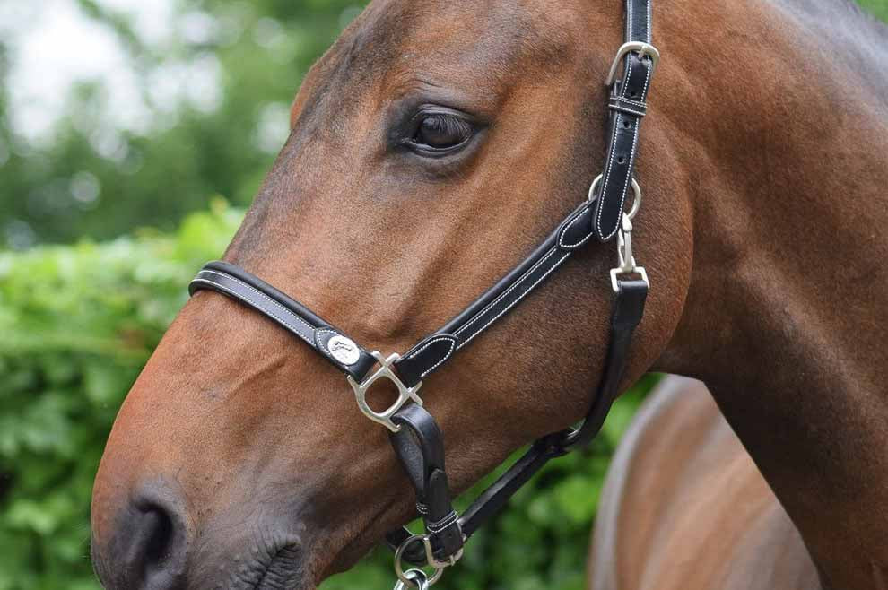 – Un licol pour tous les jours en cuir fin haut de gamme, il se ferme des deux côtés par deux boucles ce qui le rend très pratique à manipuler.