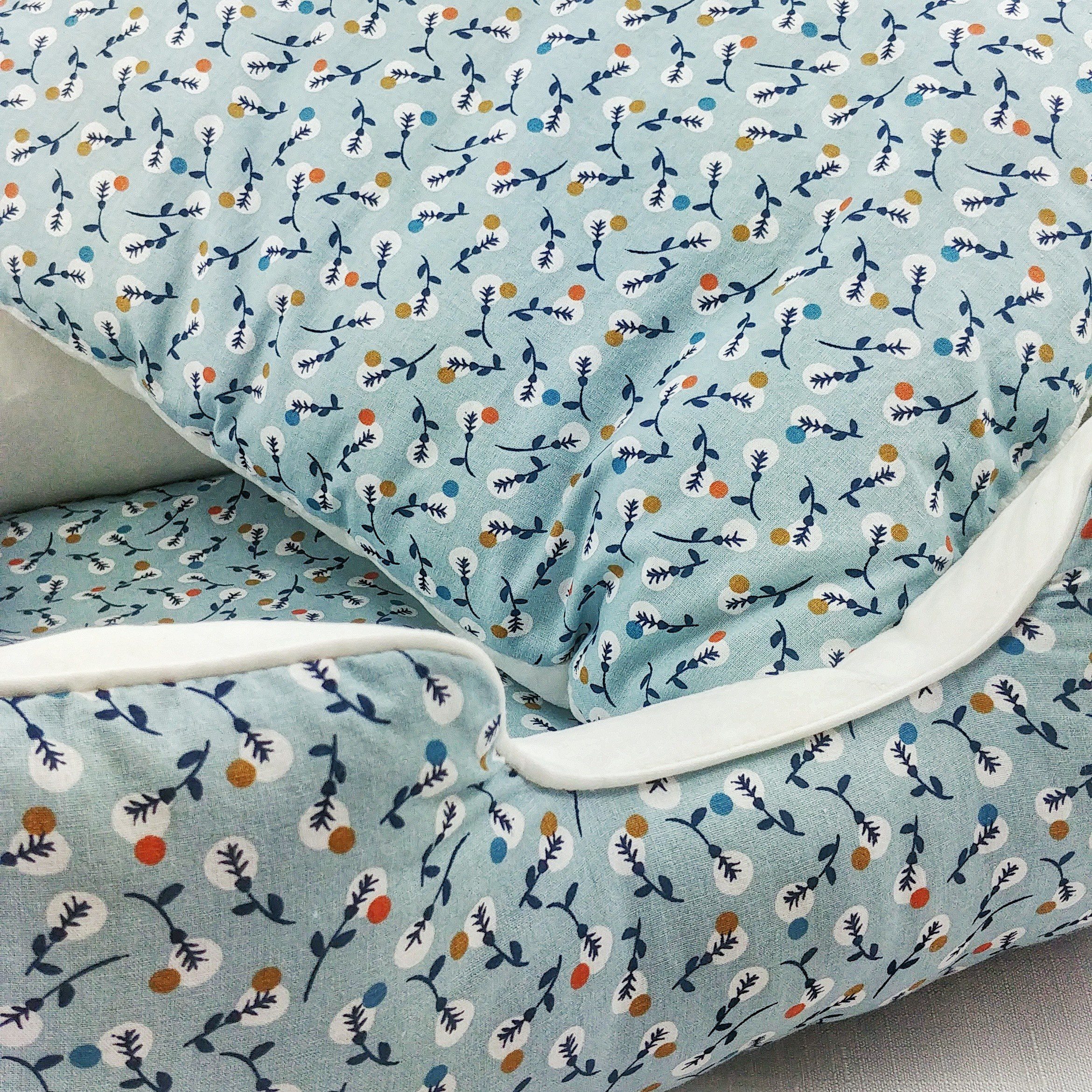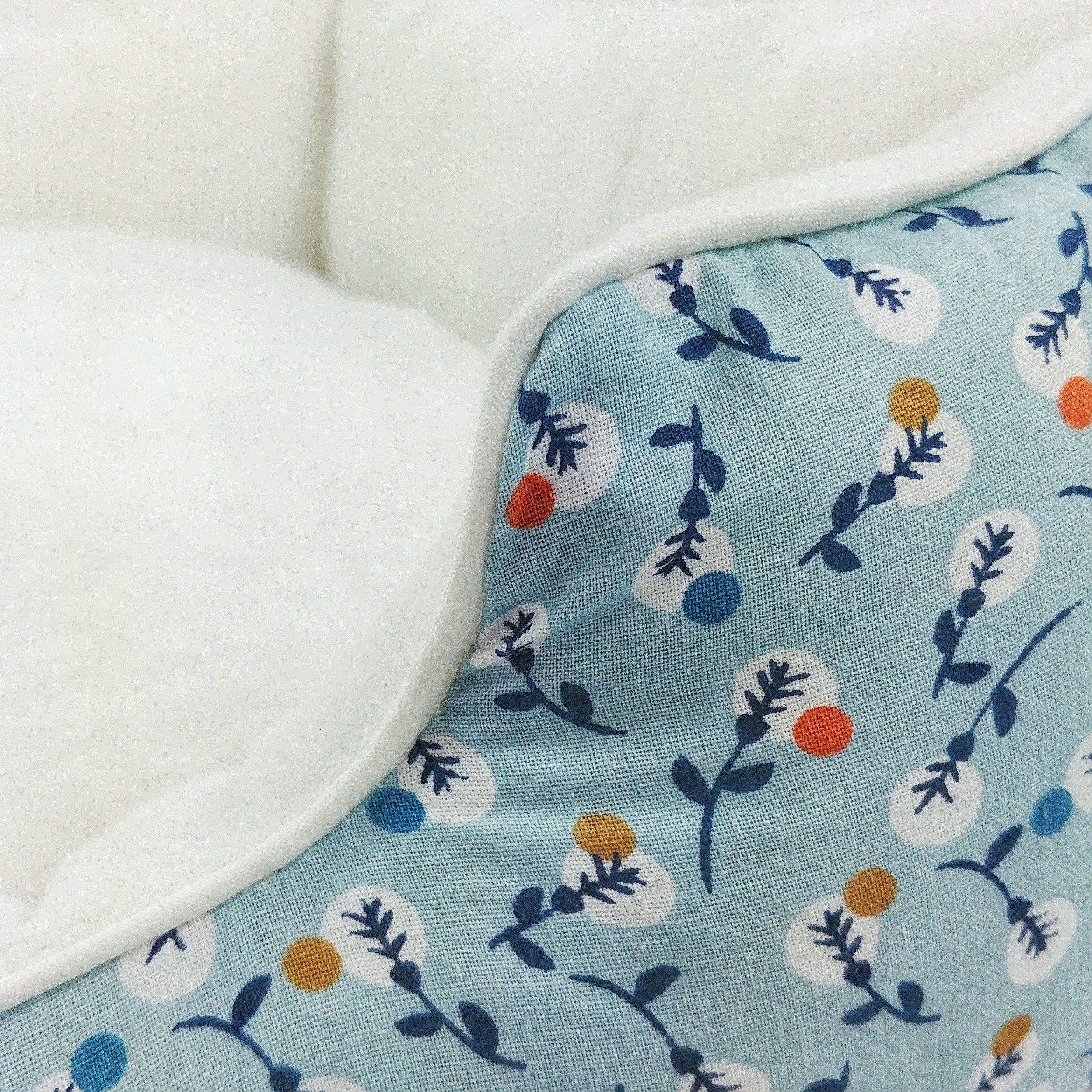 - 100% cotton white, light and deep blue, ochre and orange printed outside fabric