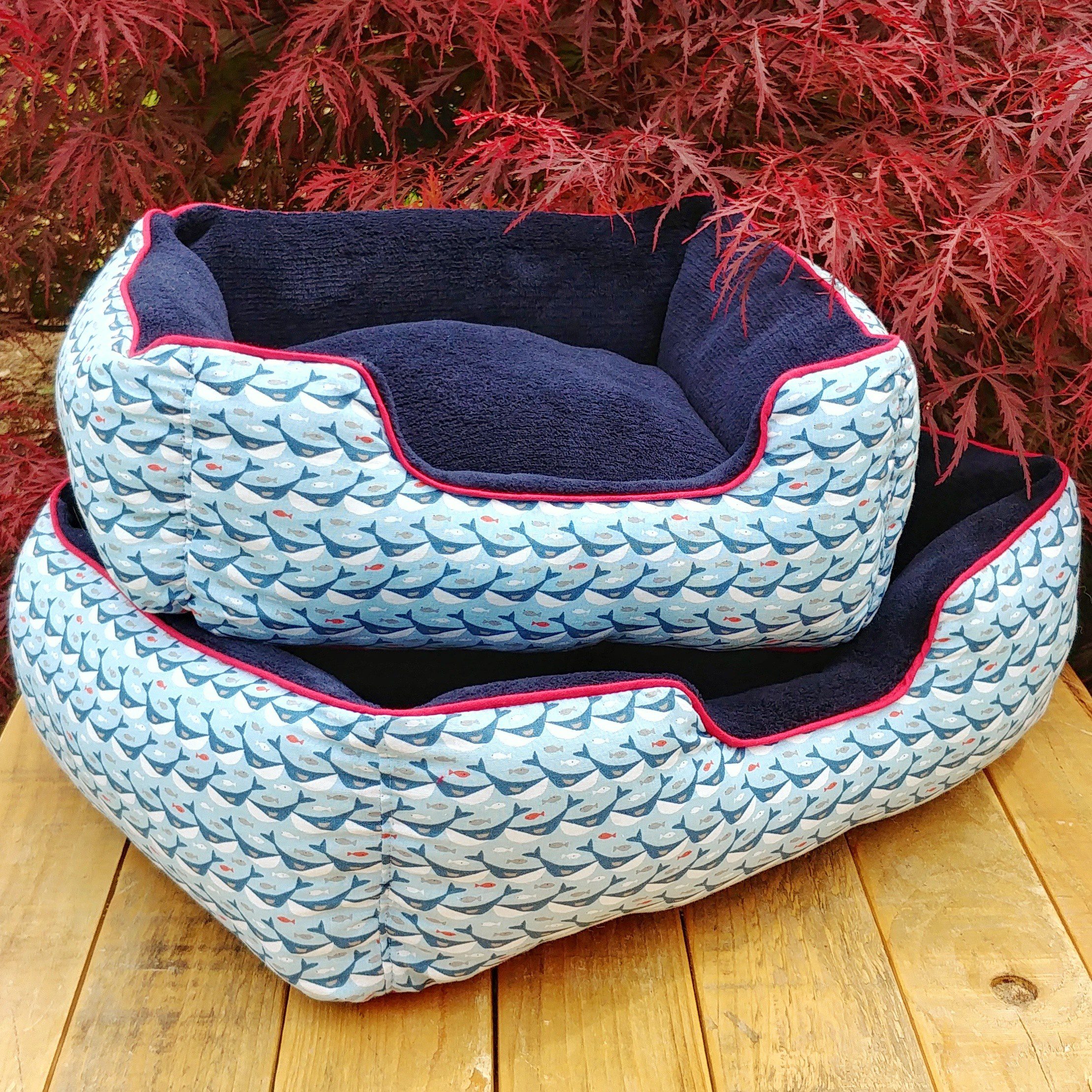 - 100% cotton light and dark blue, white, red and grey printed outside fabric