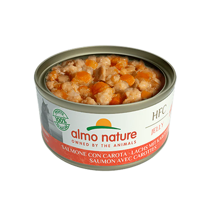 Les recettes HFC d’Almo Nature sont élaborées avec des ingrédients étant à l’origine propres à la consommation humaine et désormais utilisés pour la préparation de cette alimentation pour chats. Grâce à une identification claire et transparente sur l’origine des ingrédients, cette gamme d’alimentation garantit au chat un apport naturel et optimal en protéines animales, contribuant à un bon équilibre alimentaire et au bien-être psycho-physique. Cuites simplement au bouillon, sans additifs chimiques ni colorants alimentaires, les recettes HFC Jelly (en gelée) constituent une aide précieuse pour l’élimination des boules de poil, grâce à leur gélatine végétale.