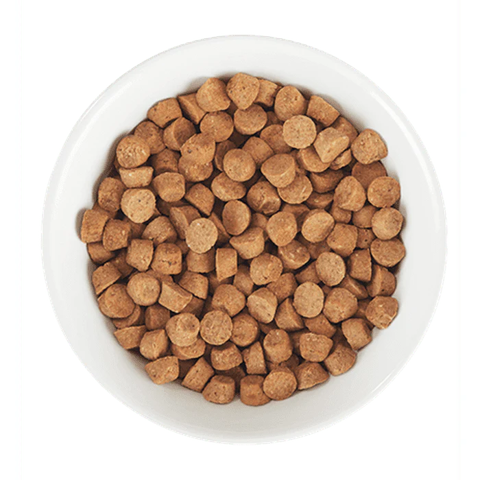 Deboned chicken, chicken meal, peas, chicken liver, lentils, chickpeas, tapioca flour, chicken fat (preserved with mixed tocopherols and citric acid), ground whole flaxseed, brewer’s dried yeast, natural chicken flavor, dicalcium phosphate, salmon oil, monosodium phosphate, salt, docosahexaenoic acid (DHA) (source of Omega-3 fatty acids), choline chloride, chicory extract, calcium carbonate, zinc proteinate, iron proteinate, dried bacillus coagulans fermentation product, rosemary extract, vitamin E supplement, copper proteinate, manganese proteinate, niacin supplement (vitamin B3), vitamin A acetate, d-calcium pantothenate, riboflavin supplement (vitamin B2), thiamine mononitrate (vitamin B1), vitamin D3 supplement, vitamin B12 supplement, pyridoxine hydrochloride (vitamin B6), calcium iodate, folic acid, sodium selenite.
