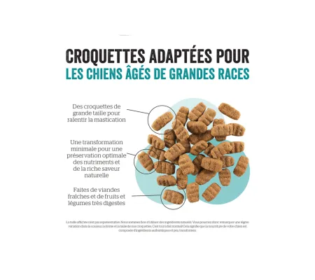 La nourriture pour chien Now Fresh Senior Grande race est destiné aux chiens de plus de 23kg au-delà de 7 ans.