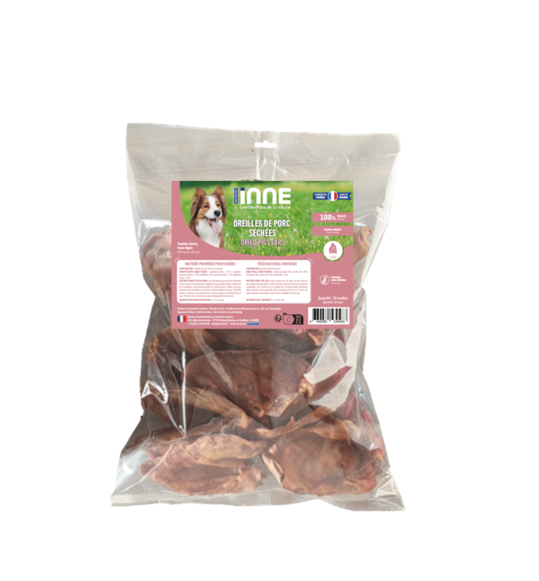 NOUVEAU ! Découvrez notre nouvelle friandise Inne pour chiens fabriquée en France : des oreilles de porc séchées entières 100% naturelles. En récompenses ou en friandises, elles feront le bonheur de votre compagnon à quattre pattes. Elles sont faciles à mâcher car elles sont constituées de cartilage mou. L’oreille de porc séchée favorise la mastication et entretient ainsi une bonne hygiène bucco-dentaire chez votre chien. Elle permet également de faire les dents des chiots. C’est la récompense idéale pour occuper votre chien !