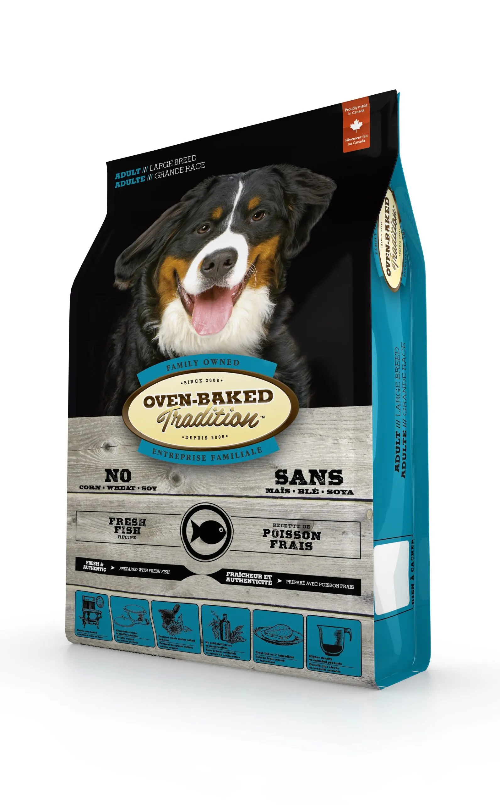- La nourriture Oven-Baked Tradition pour chien adulte de grande race fait l’objet d’une cuisson lente au four favorisant le rehaussement des saveurs et la préservation des nutriments et vitamines essentiels.
