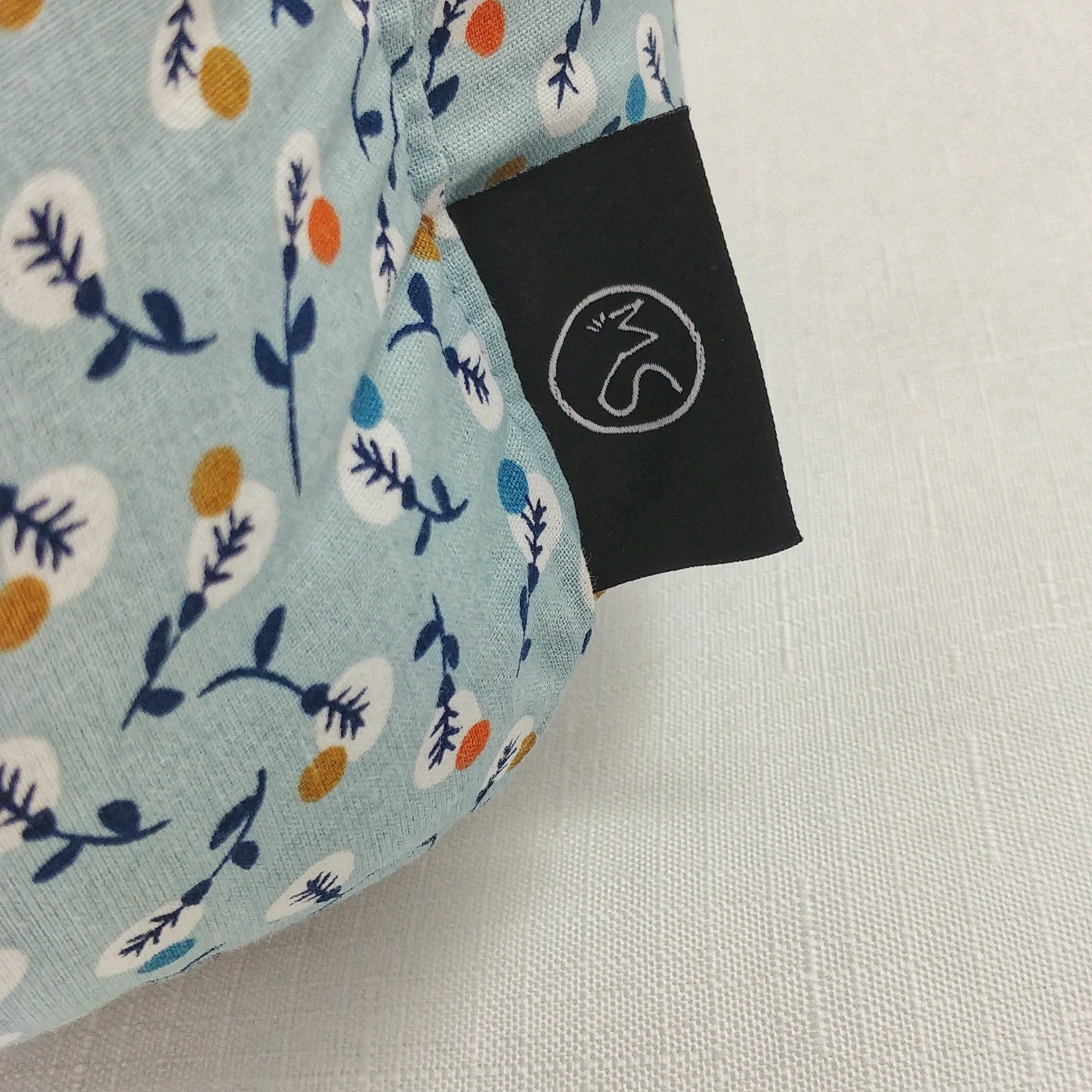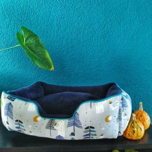 - Tissu extérieur imprimé 100% coton bleu clair, ocre, bleu foncé, blanc et orange