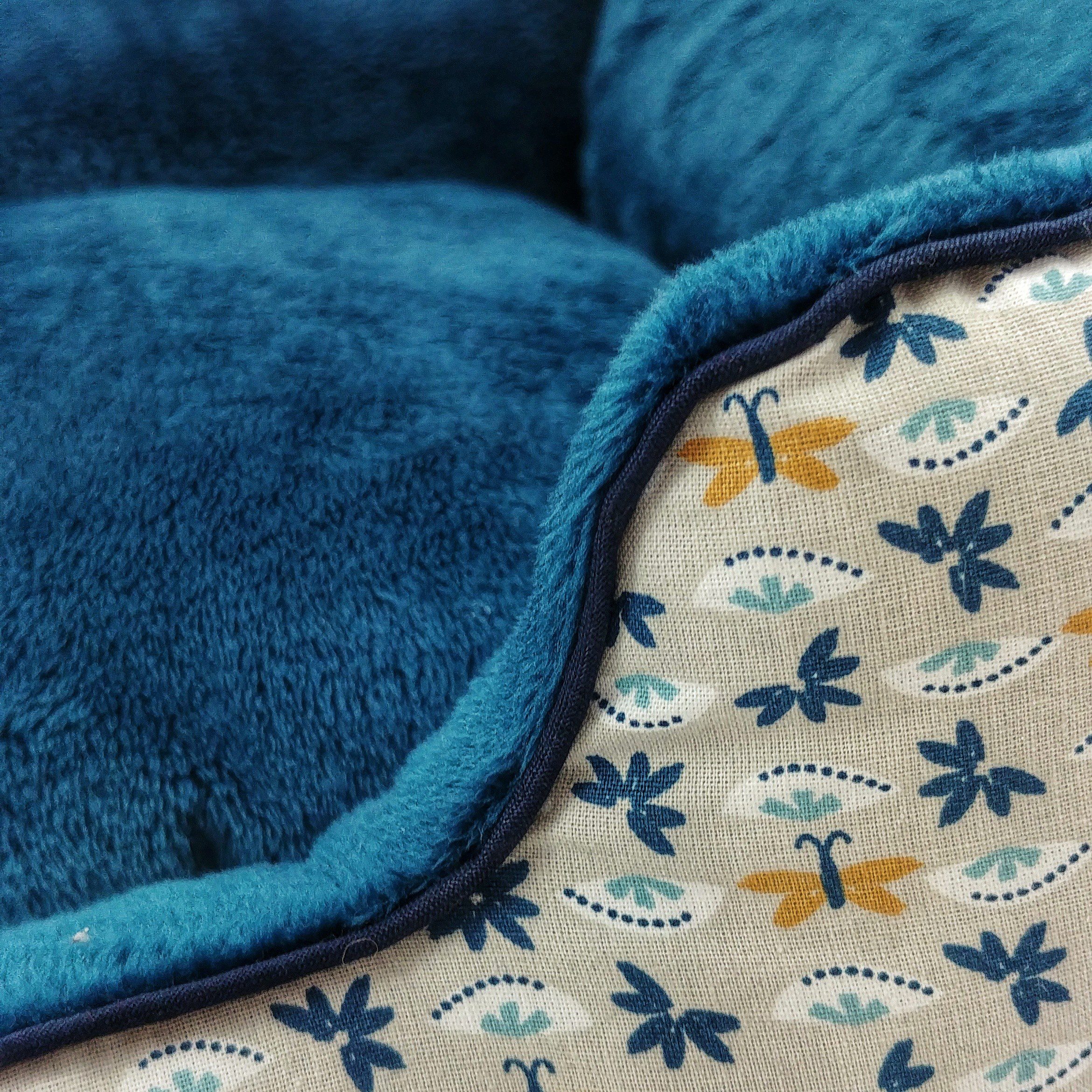 - Tissu extérieur imprimé 100% coton jaune, sable, bleu clair, blanc et bleu foncé