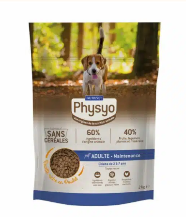 Protéines de volaille déshydratées (dont poulet minimum 15 %), fécule de pomme de terre, protéines animales déshydratées, graisse de volaille, pois, levure de bière (minimum 4 %), fibre végétale (minimum 1 %), protéines de poisson déshydratées, chlorure de potassium, chlorhydrate de glucosamine, sulfate de chondroïtine, hydrolysat de foie de volaille, huile de saumon (minimum 1 %), poudre d’œufs, manno-oligosaccharides, fructo-oligosaccharides, Yucca schidigera, extraits de plantes et de fruits.