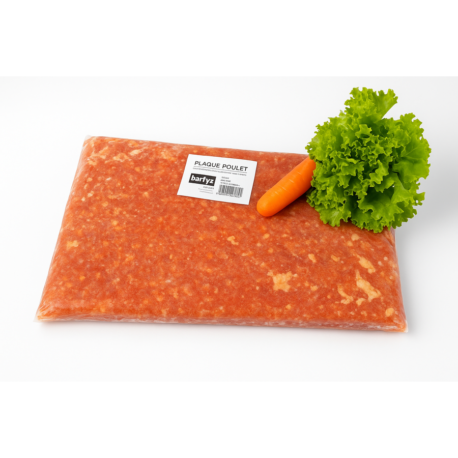 Plaque de poulet & bœuf broyé 4 kg – Format familial BARF chien & chat