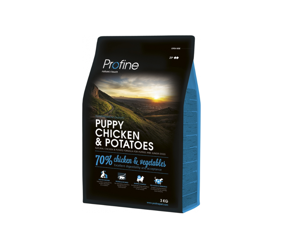 Elle comporte des protéines et des graisses de poulet qui participent à la formation normale de l’ensemble de la musculature et de l’ossature. Les croquettes Profine Puppy Chicken proposent un juste équilibre protéines/matières grasses pour une croissance optimale.