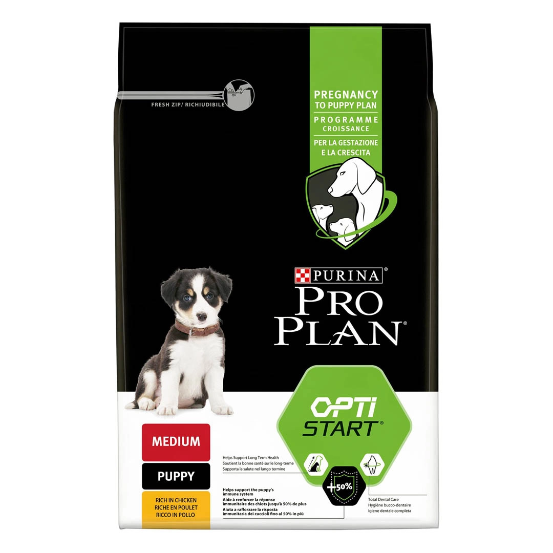 Les croquettes PRO PLAN Medium Puppy à base de savoureux morceaux de poulet et dont la taille est adaptée à la mâchoire des chiots de moyennes races sont très appréciées. Elles ont été développées par des scientifiques et des vétérinaires pour répondre aux besoins spécifiques des jeunes chiens de races moyennes pesant entre 10 et 25 kg à l’âge adulte. Elles contiennent la formule OPTISTART, une combinaison de substances vitales spécialement sélectionnées pour aider votre chiot à mener une vie saine et active durant ses premières années.