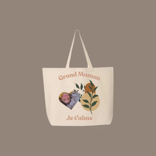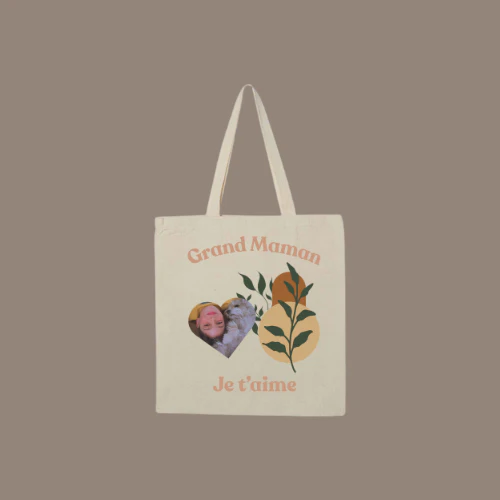 Offrez à votre grand-maman un souvenir plein d’amour avec notre Sac Réutilisable Grand-maman™, personnalisable avec une photo en forme de cœur et le doux message “Je t’aime”. Un cadeau touchant, utile et esthétique, parfait pour lui rappeler chaque jour combien elle est précieuse.