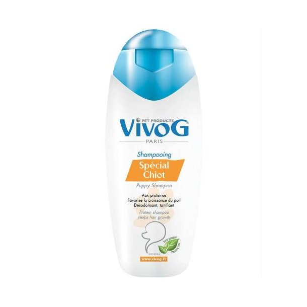 Le shampoooing chiot Vivog est super hydratant et ultra-doux. Favorise la croissance du poil. Rénovateur. Sans paraben. A l’huile de lin.