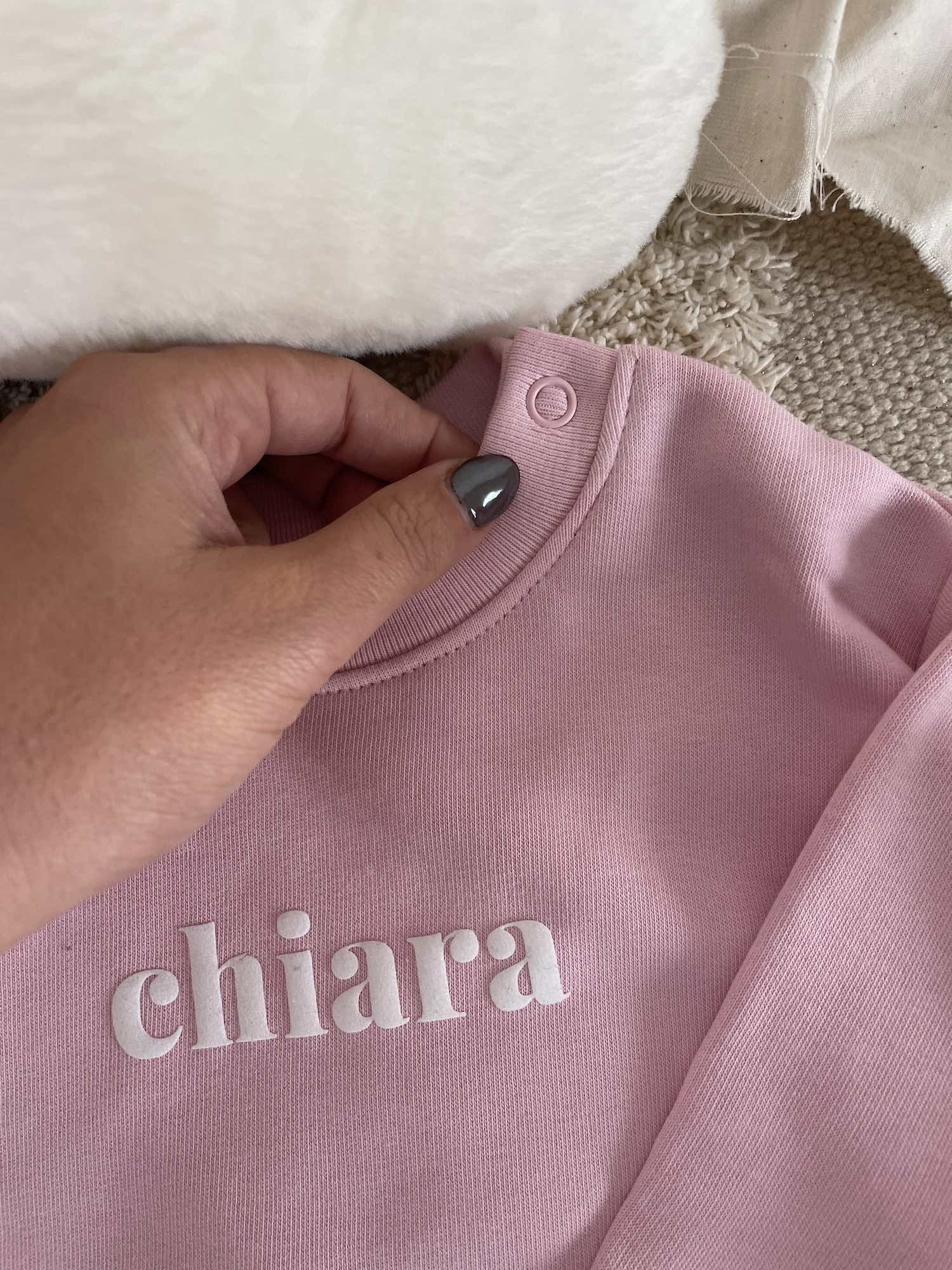 Ce sweat personnalisé bébé en rose est un cadeau plein de tendresse, qui apporte une touche unique à chaque moment spécial.