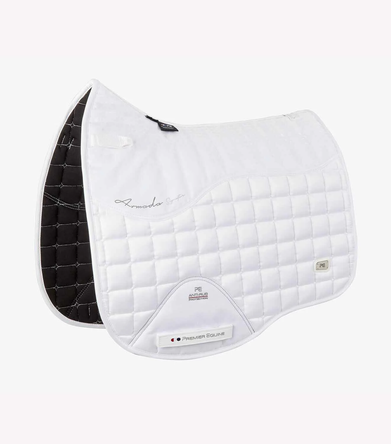 Tapis de selle de dressage en satin sophistiqué avec gel antidérapant.