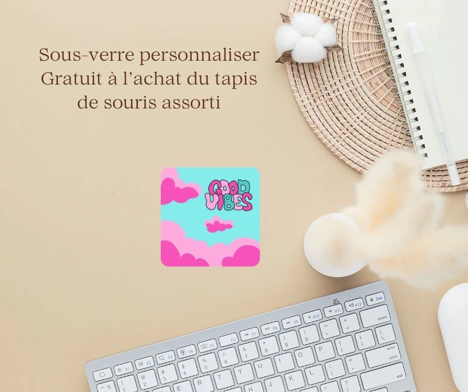 Pour chaque achat de Tapis de Souris « Good Vibes™ », recevez un sous-verre personnalisé identique à l’image de votre tapis. Une touche de bien-être et de sérénité supplémentaire pour votre bureau ! 🎁
