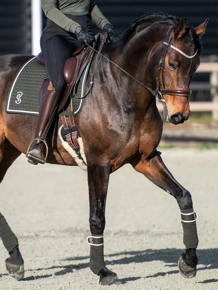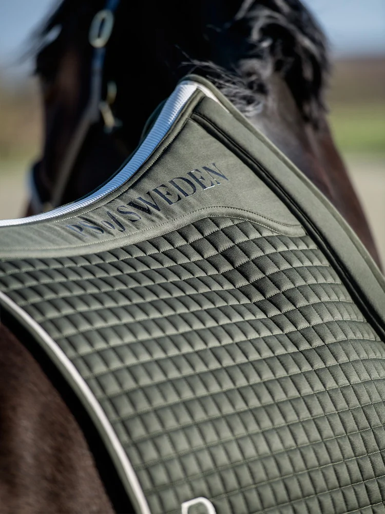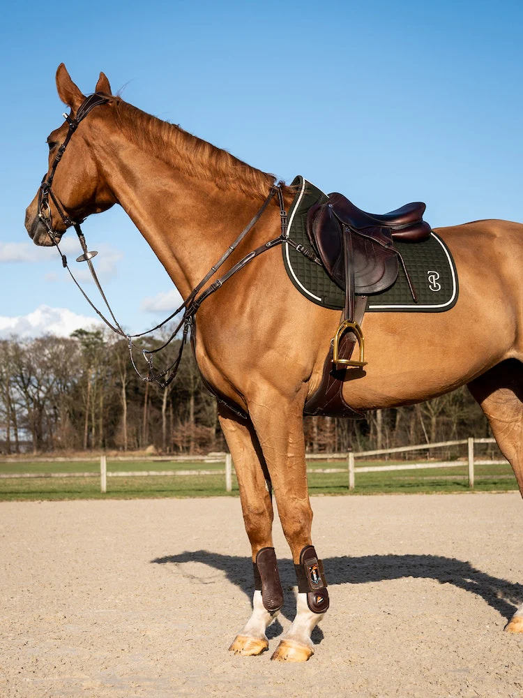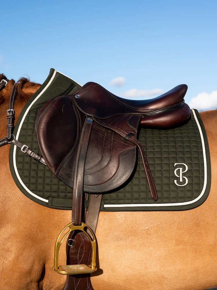 Tapis de selle sportif et fonctionnel de forme anatomique au design minimaliste fabriqué en 100% coton.